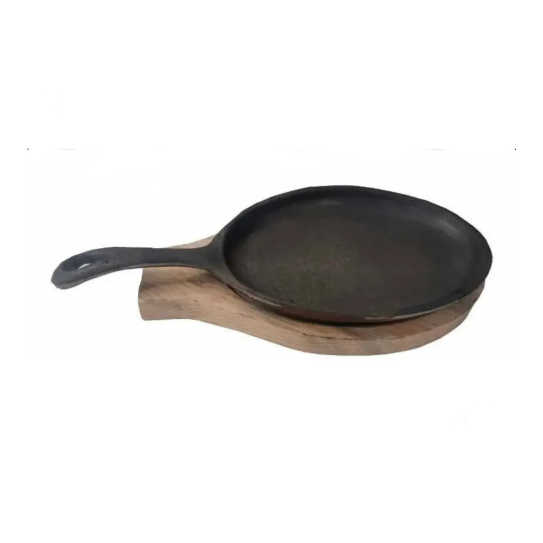 6 Platos Comal Con Base De Madera Y Mando Hierro Fundido