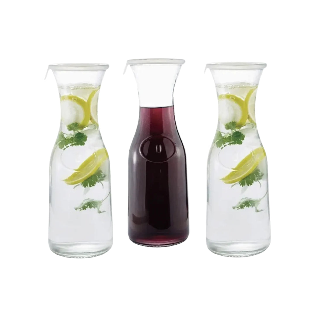 Mantén tus aguas o cualquier bebida fresca con este juego de garrafas de vidrio. No incluye tapas