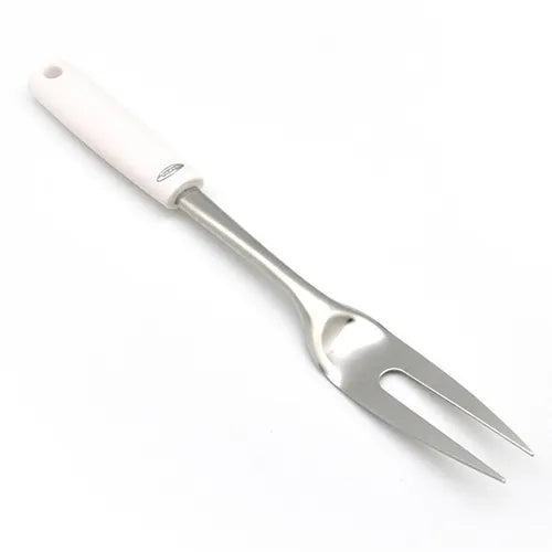 TENEDOR PARRILLERO TRINCHE DE ACERO INOXIDABLE DE 2 DIENTES, MANGO DE PLASTICO, 33 CM DE LARGO, APTO PARA LAVAVAJILLAS.